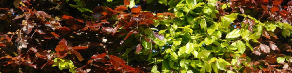 Der große Vorteil von Buchen im Vergleich zu vielen anderen Heckenpflanzen ist, dass sie in zwei verschiedenen Farben erhältlich sind. Ganz im Gegensatz zu Eiben-, Buchsbaum, Koniferen- oder Hainbuchenhecken, die ja immer grün belaubt sind. Bei den Rotbuchen haben Sie die Wahl zwischen Grün, Rot oder einer Kombination von beiden!