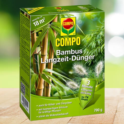 Die Pflege und das Zurückschneiden Ihres Bambus ist eine relativ einfache, aber dennoch wichtige Aufgabe. Bambus wächst sehr schnell. Daher empfehlen wir, die Pflanzen jährlich zu stutzen, um sie gesund und in guter Form zu halten. Eine ausreichende Nährstoffversorgung für Ihren Bambus ist ebenfalls sehr wichtig. Verwenden Sie also den COMPO Bambus und Ziergräser Langzeit-Dünger, der Ihren Bambus optimal versorgt. Dieser Dünger ermöglicht eine gesunde und widerstandsfähige Pflanze, die den Winter unbeschadet übersteht. Düngen Sie Ihren Bambus zweimal jährlich, im zeitigen Frühjahr und im Sommer, damit Ihre Bambushecke lange gut aussieht.