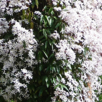 Clematis weiß-rosa immergrün Clematis armandii 'Apple Blossom'Versand innerhalb von 0-2 Werktagen
