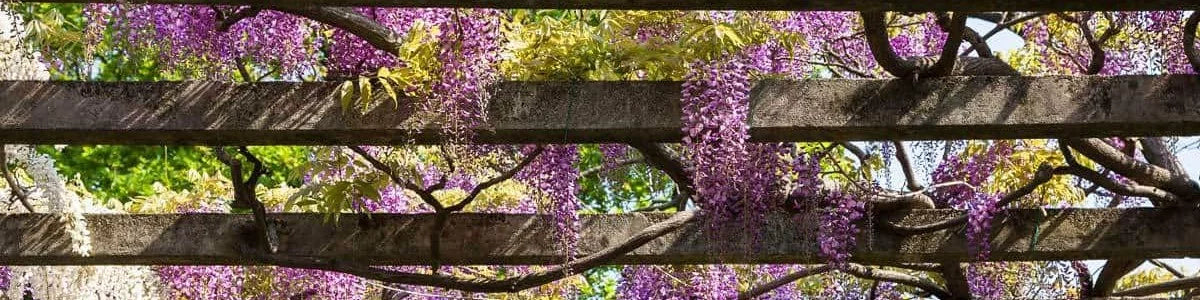 Wenn Sie sich eine Kletterpflanze wünschen, die im Sommer blüht, sollten Sie sich für eine schnell wachsende blühende Kletterpflanze entscheiden. Der Chinesische Blauregen ist ein besonders üppiger Blüher, der mit seinen großen blau-violetten Blütenrispen bezaubert. Die dekorativen hängenden Blütentrauben sind ein echter Blickfang im Garten!