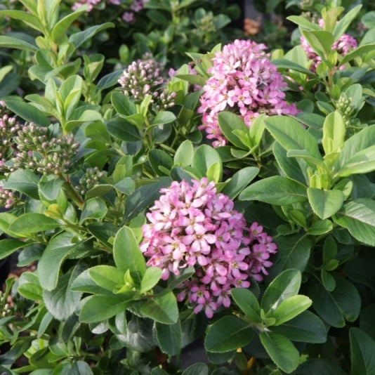 Der Andenstrauch (Escallonia) 'Pink Elle' ist ein üppig blühender Zierstrauch mit rosafarbenen Blüten. Die Pflanze blüht im Sommer (Juni und Juli) ausgiebig. Die Blüten haben einen süßlichen Duft und locken damit Bienen und Schmetterlinge an. Der Andenstrauch bezaubert aber nicht nur mit seinen rosa Blüten, sondern auch mit seinen schönen, glänzend grünen Blättern. Da es sich um einen immergrünen Strauch handelt, haben Sie mit dieser Pflanze auch im Winter einen dekorativen Hingucker im Garten!