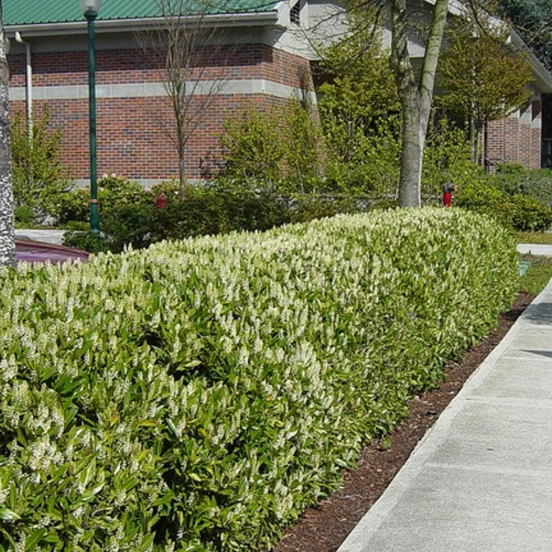 Der Kirschlorbeer 'Otto Luyken' zeichnet sich durch seinen kompakten Wuchs aus und muss kaum zurückgeschnitten werden. Kein Wunder also, dass man diese Kirschlorbeer-Sorte häufig in öffentlichen Grünanlagen antrifft!